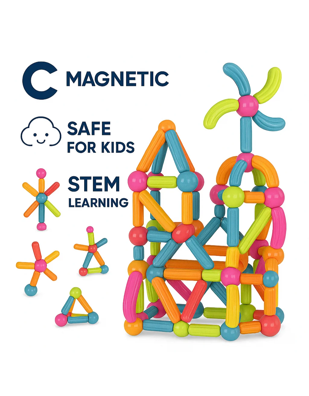 Explore endless creativity and learning with Playora Magnetic Building Blocks – a fun and educational DIY toy for kids aged 1 and above. These colorful magnetic tiles come in 3 different set sizes (26, 36, or 52 PCS) to match your child’s learning level and imagination. Perfect for early STEM education, they help develop problem-solving skills, hand-eye coordination, and spatial understanding through engaging, hands-on play. Made from durable ABS plastic and powerful magnets, the Playora blocks are safe, non-toxic, and BIS compliant. Whether it’s solo play or a fun family session, these blocks promise hours of screen-free entertainment and brain-boosting fun.